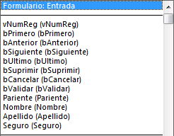(*) Por razones técnicas, no es posible seleccionar elementos de list box (encabezado, pies de página, columnas) cuando el editor de formularios está en el modo Zoom.