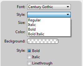 ![]() | Plain, Bold, Italics, Underline and Strikethrough style buttons. |