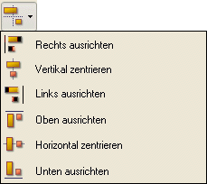 Vertikal entsprechen die Icons folgender Verteilung: bündig in Bezug auf die oberen Kanten, Mitten (vert.) und unteren Kanten der gewählten Objekte.