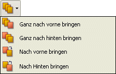 Im Menü Objekt den Befehl Ganz nach hinten bringen, Ganz nach vorne bringen bzw. Nach vorne bringen,Nach hinten bringen,