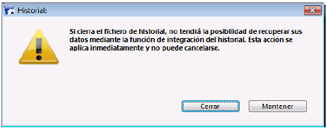 Si hace clic en el botón Cerrar, se cierra de inmediato el archivo de historial actual (no es necesario validar después la caja de diálogo de las Propiedades).