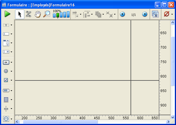 Pour l’impression, les éléments doivent être compris dans la largeur d’une page, sans limitation de longueur. La taille de la page dépend de votre imprimante, du papier qu’elle utilise et du format d’impression tel qu’il est défini dans la boîte de dialogue du format d’impression. 4D affiche les limites de la page dans l’éditeur de formulaires, sous la forme de lignes. Les spécifications sont stockées avec le formulaire lorsqu’il est fermé. Les limites du formulaire peuvent être affichées ou masquées à l’aide de la commande Papier du sous-menu Afficher de l’éditeur de formulaires (reportez-vous au paragraphe Afficher/masquer des éléments de l’éditeur).