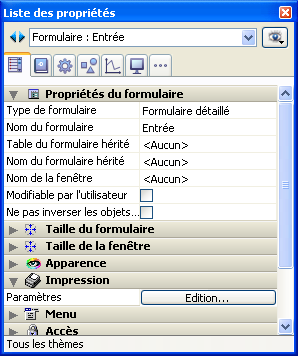 Pour cela, cliquez sur le bouton Paramètres/Edition... dans le thème “Impression” de la Liste des propriétés du formulaire (cf. paragraphe Propriétés des formulaires).
