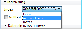 • Keiner: Erstellt keinen Index oder entfernt einen vorhandenen Index.