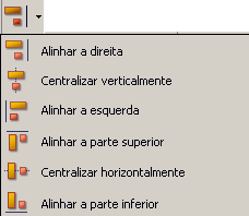 Verticalmente, os ícones correspondem às seguintes distribuições: equidistante às margens superior, central (vert.) e inferior dos objetos selecionados.