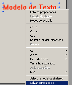 O comando Guardar como modelo, disponível no menu contextual do editor quando se clica sobre um objeto, guarda o objeto como modelo. Este modelo e suas propriedades são utilizadas para a criação de objetos do mesmo tipo.