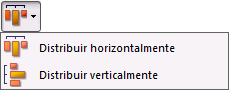 Verticalmente, los iconos corresponden a las siguientes distribuciones: equidistante a los bordes superiores, centros (vert.) y bordes inferiores de los objetos seleccionados.