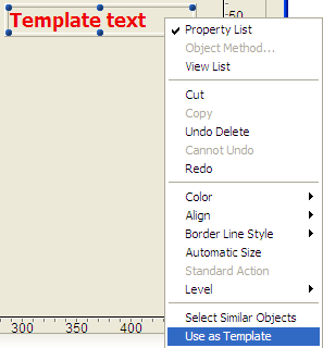The Use as Template command, available in the context menu of the editor when an object is clicked, saves the clicked object as a template. This template and its properties will then be used when creating all objects of the same type.
