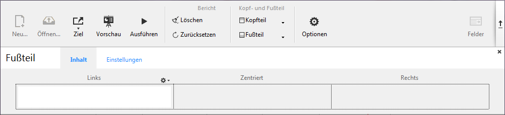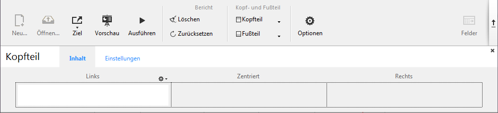 Um Kopf- und Fußteile hinzuzufügen, markieren Sie in der Werkzeugleiste des Schnellberichteditors die Option Kopfteil oder Fußteil.