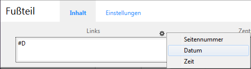 Unter Einstellungen können Sie die Darstellung des Kopf- oder Fußteils festlegen: