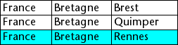 Par exemple, si vous voulez sélectionner la ligne contenant Rennes, vous devez passer :