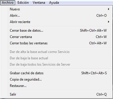 Estos comandos permiten abrir una base con 4D Server. El comando Abrir reciente> muestra un submenú que lista las bases abiertas recientemente por 4D Server. Para reiniciar este menú, seleccione el comando Borrar lista de recientes. Los comandos de apertura de bases se detallan en la sección Crear o abrir una base 4D Server.