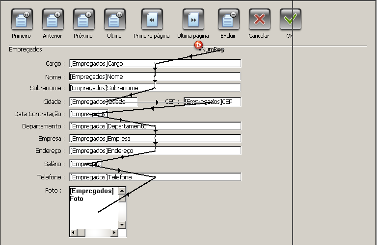 2. Para modificar a ordem de entrada, coloque o cursor em um objeto no formulário e mantendo pressionado o botão do mouse, arraste o mouse até o próximo objeto na ordem de entrada.