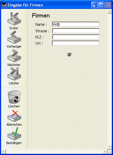 Die folgende Abbildung zeigt das Fenster vor einem Suchlauf nach Mitarbeiternamen, die mit „W“ beginnen: