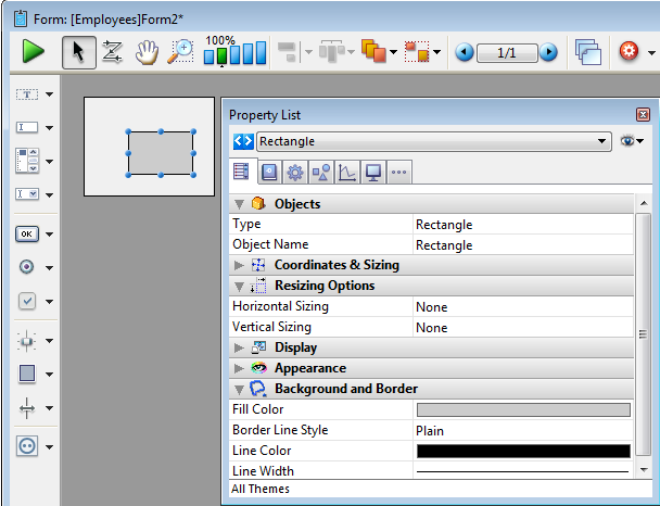 Pour plus d'information sur l'affichage de les objets tels que les rectangles, référez-vous à la section Définir les propriétés d'affichage des objets.