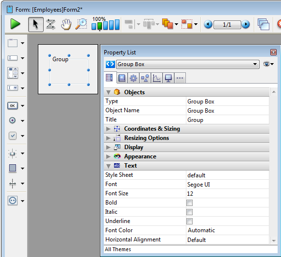 Ajoute une zone de groupe dont les propriétés (couleur, épaisseur du trait, etc.) peuvent être définies directement en utilisant la Liste des propriétés ou par programmation.