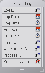 L’exemple suivant montre comment maintenir un historique des connexions à la base de données en utilisant la On Server Open Connection Database Method et la On Server Close Connection database method. La table [Server Log] (ci-dessous) sert à garder la trace des process de connexion :