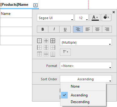 Una vez que se define la ordenación, se agrega una nueva líinea de ruptura al informe rápido. Puede ver la ordenación en cualquier momento al pasar el cursor por encima del encabezado de la nueva línea de ruptura: