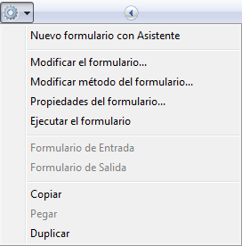4D permite copiar/pegar o duplicar un formulario existente, vía los comandos correspondientes del menú contextual o en el menú de opciones de la página. Esto permite desarrollar rápidamente varios formularios con características comunes.