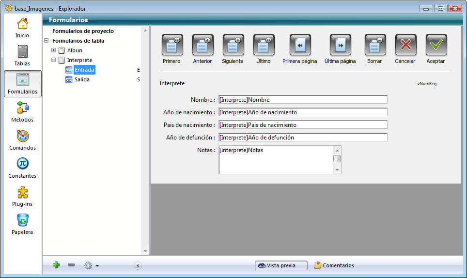 Puede insertar un nombre de formulario en un método arrastrándolo. Al hacer esto, el nombre del formulario aparece utilizando la sintaxis correcta. Por ejemplo, si arrastra el formulario Entrada de la tabla [Empresas], aparecerá como [Empresas]"Entrada".
