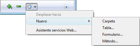 Los objetos de tipo Tabla, Formulario y Método proyecto pueden ubicarse en carpetas. También es posible crear subcarpetas en diferentes niveles.