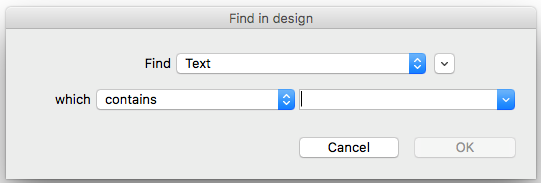 Specify your search criteria in the "Find in design" window: