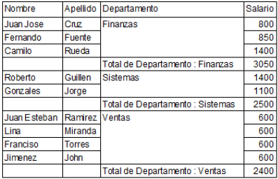 Este es el modo por defecto. En este modo, los informes suelen mostrar los registros como una lista con los niveles de ruptura donde se realizan sumas. El siguiente es un informe rápido tipo típico de lista: