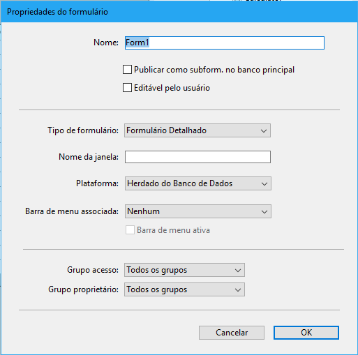 Propriedades de formulário (Explorador)