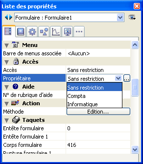 Cette propriété détermine les options présentes dans la Liste des propriétés pour le formulaire.