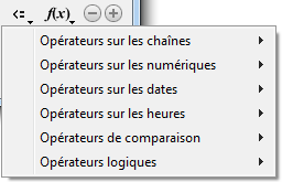• : affiche sous forme hiérarchique la liste des opérateurs utilisables dans le contexte d’une recherche par formule.