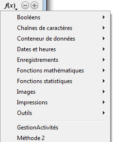 • : affiche sous forme hiérarchique la liste des tables et des champs de la base dont le type est compatible avec une recherche par formule.