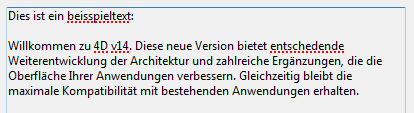In 4D wird die Rechtschreibprüfung kontinuierlich in Textbereichen angewandt. Fehler werden direkt im Text mit einer gestrichelten Linie hervorgehoben:
