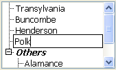 A list can also be used to specify the items in a “hierarchical list” object. When the list is used in this manner, you can control whether each item in the list can be edited by the user. If a list item is modifiable, the user can hold down the Alt key under Windows or Option key under Mac OS and click on the item (or simply click twice) to get an insertion point. An editable item in a hierarchical list is shown below: