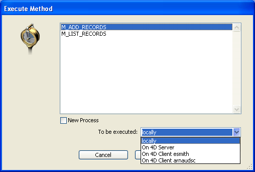 Note: The "Execute on Server" method property can also be used to execute a method in a process on the server, but the method uses a "twinned" process of the client process in this case, which means more particularly that it can take advantage of the environment of this client process. In this case, it is not a 4D stored procedure. For more information, please refer to the Execute on Server attribute section.