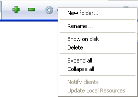 • Show on disk (only active in local mode): Displays the folder in a window of the operating system.