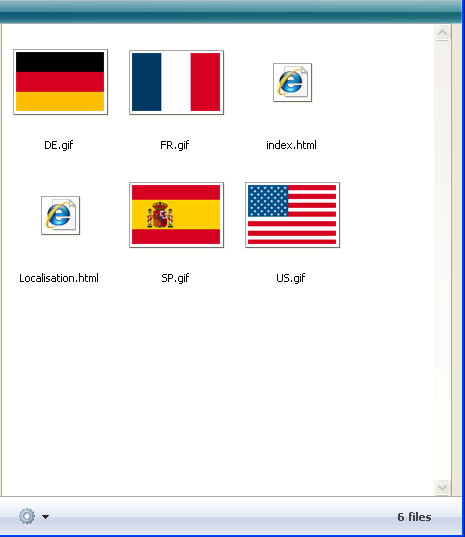 The right-hand part of the resources explorer window is a preview area that displays the files contained in the selected folder (including files found in any subfolders). This area is updated each time the item selected in the list of folders is changed.