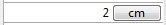 Exemple : Vous souhaitez définir une valeur de saisie numérique suivie d'une unité parmi deux possibles : "cm" ou "pixels". La valeur courante est "2" + "cm". Vous utilisez des valeurs définies directement dans l'objet (attribut "unitsList") :