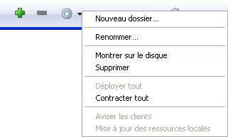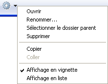 Vous pouvez également utiliser un menu contextuel avec la liste des dossiers. Les commandes de ce menu sont identiques à celles du menu d’action.