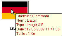 Une info-bulle associée à chaque image fournit des informations supplémentaires : chemin d’accès (relatif), nom, type, date et heure de modification et la taille.