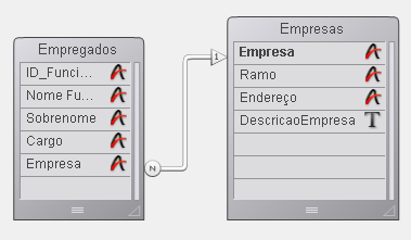1) A tabela principal do list box é [Empregados]. O list box mostra a seleção atual da tabela [Empregados] e ativa a relação automática a fim de mostrar o nome da empresa para cada empregado: