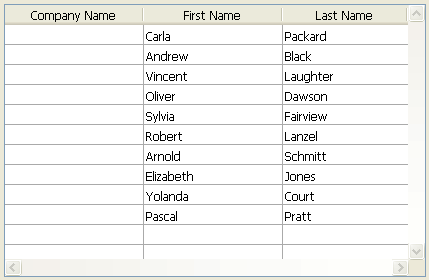 O campo [Empresas]Nome está associado à primeira coluna de um list box. Os campos [Empregados]Nome e [Empregados]Sobrenome estão associados às duas colunas seguintes. A fonte de dados do list box é a seleção atual.