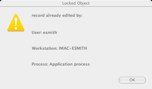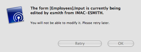 Since the form is already in Edit mode on the other machine, the 4D Server built-in object locking mechanism informs you: