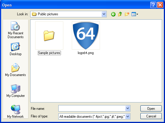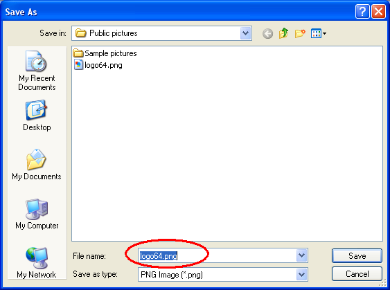 2. Next the user saves the contents of the Picture file: the name logo64.png is provided in the dialog box (note that this is a default name and can be changed):