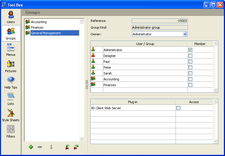 データベースのセキュリティを確保し、ユーザーに異なるアクセスレベルを提供する最も効果的な方法は、アクセス権の階層構造を利用することです。ユーザーは適切なグループに割り振られ、各グループはネストされてアクセス権の階層構造を形成します。この節では、このような構造の取り扱い方について少し説明します。