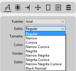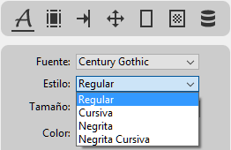 Los elementos disponibles en el menú Estilo varían en función de la fuente seleccionada: