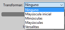 El menú Alin. vert. permite cambiar el texto a superíndice o subíndice y el menú Transformar permite elegir entre las diferentes combinaciones de tipo de fuente: