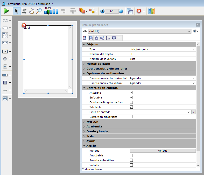 Para más información acerca del uso de los list boxes en formularios, consulte la sección Presentación para list boxes.