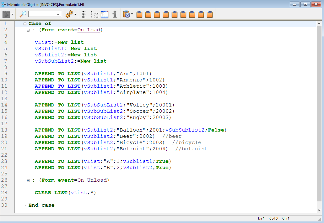 Agrega una lista jerárquica que incluye código de ejemplo en su método de objeto usado para implementar una jerarquía básica de varios niveles. Puede utilizar la lista de propiedades para modificar sus propiedades.