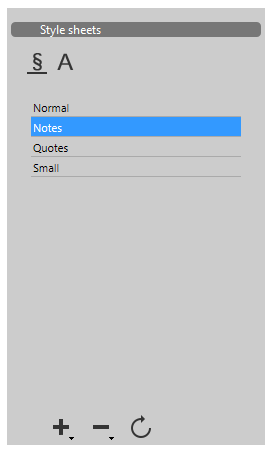 Este panel gestiona hojas de estilo para documentos en el área 4D Write Pro.