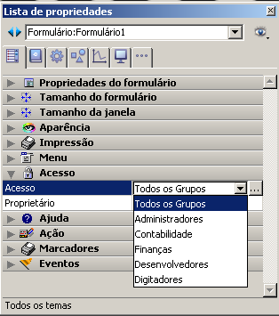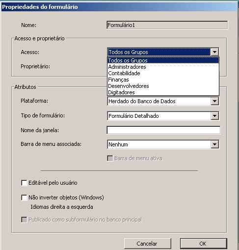 Se você não selecionar um grupo, todos os grupos têm privilégios de acesso ao formulário (padrão).